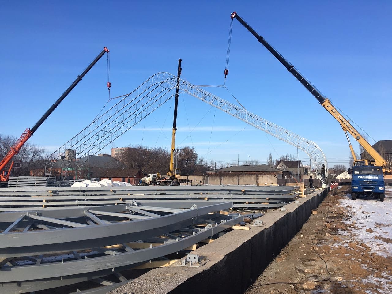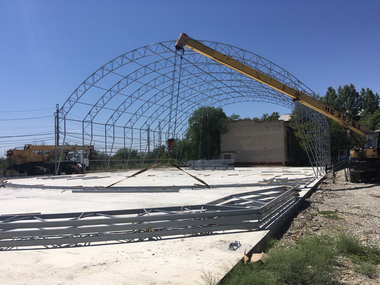 В г.Нефтекумск Ставропольского края специалисты компании ТЕНТПРО приступили к монтажу каркасно-тентового спортивного комплекса. Сооружение размером 25х50м...