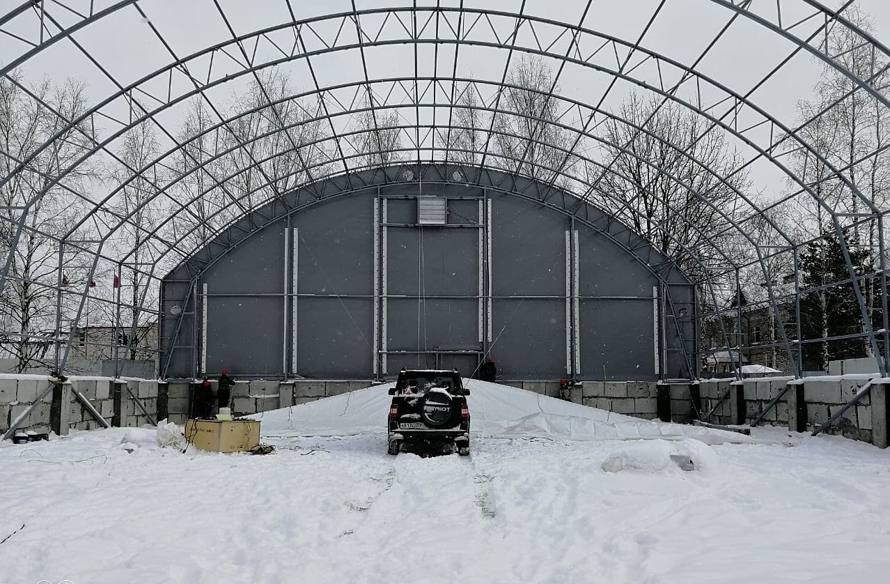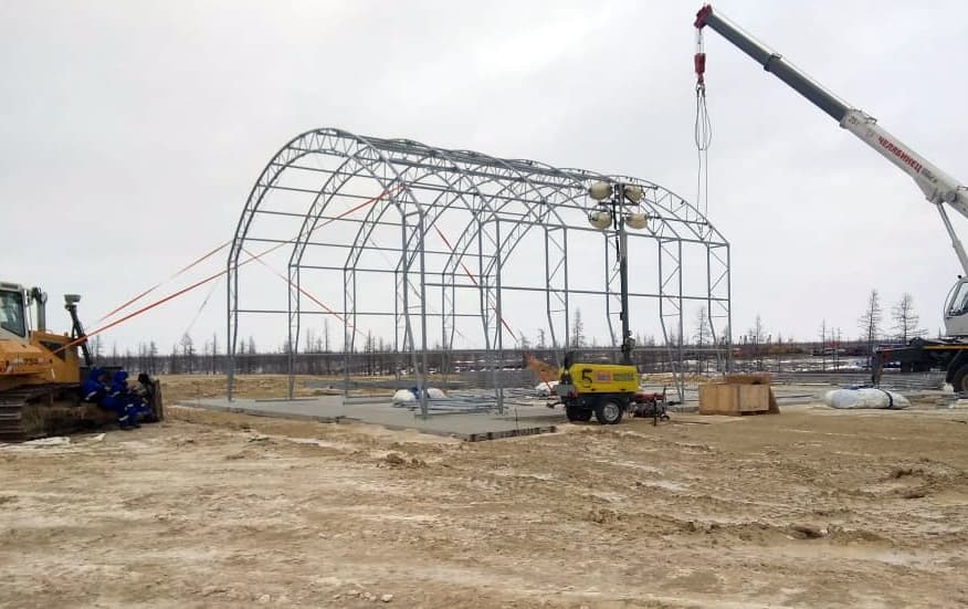 На Северо-Русском месторождении (ЯНАО) специалисты компании ТЕНТПРО сдали заказчику каркасно-тентовый ангар производственного назначения для РММ, размером 12х20м...