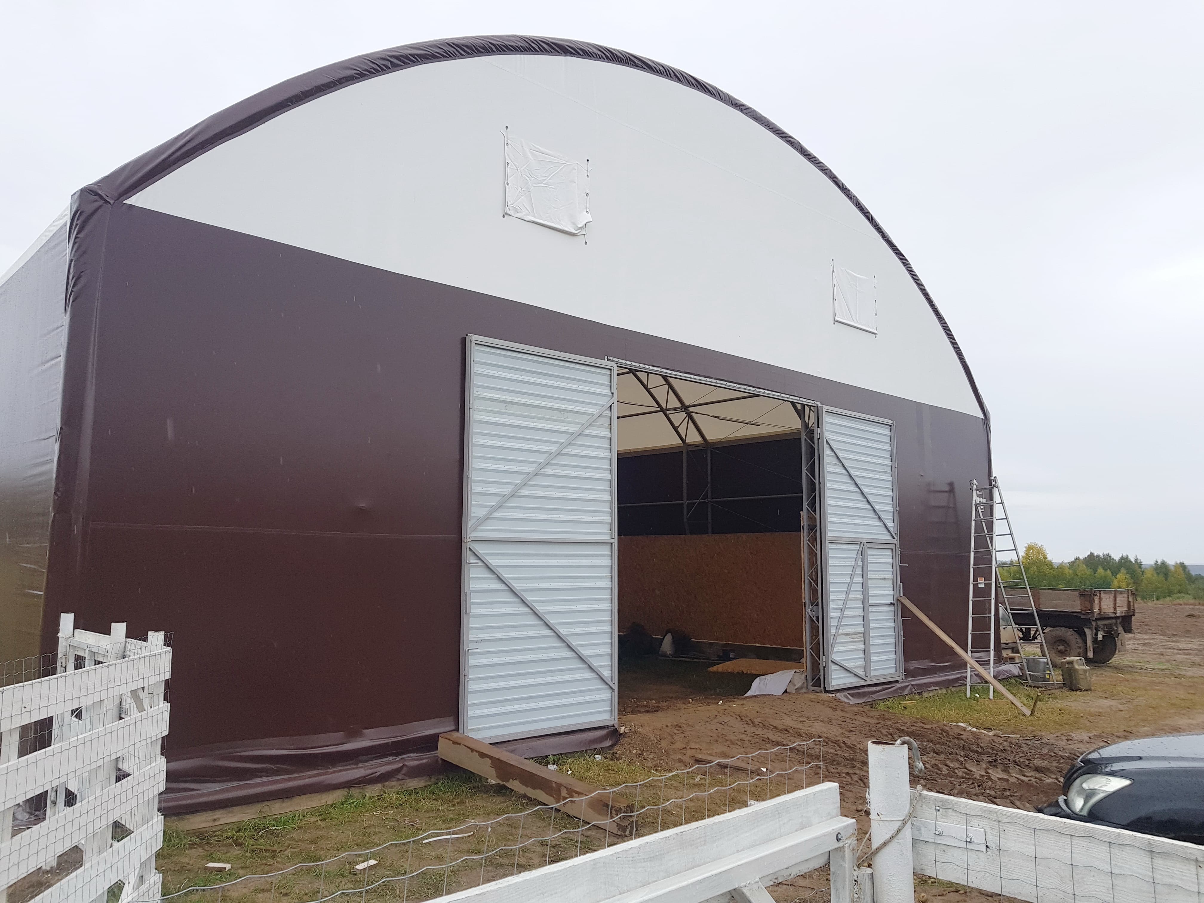 В Ленинградской области специалисты компании ТЕНТПРО приступили к монтажу очередного каркасно-тентового конного манежа. Ангар размером 30х64м...
