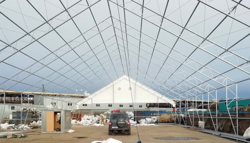 В Санкт-Петербурге специалисты монтажного подразделения компании ТЕНТПРО завершили возведение каркасно-тентового сооружения размером 55х155м серии...
