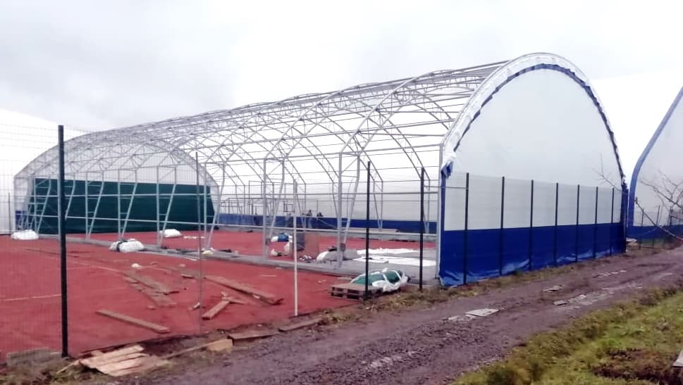 В г. Донской, Тульской области, специалистами компании ТЕНТПРО продолжается монтаж каркасно-тентового сооружения на 4 теннисных корта, размером 38х64м, серии...