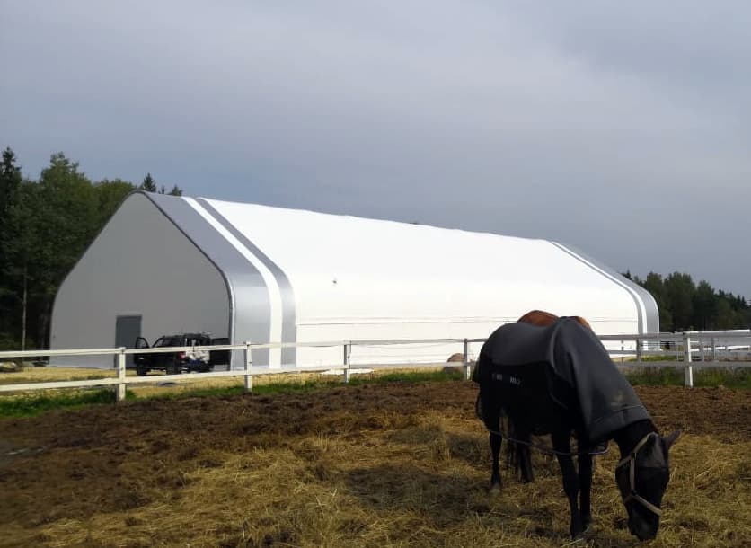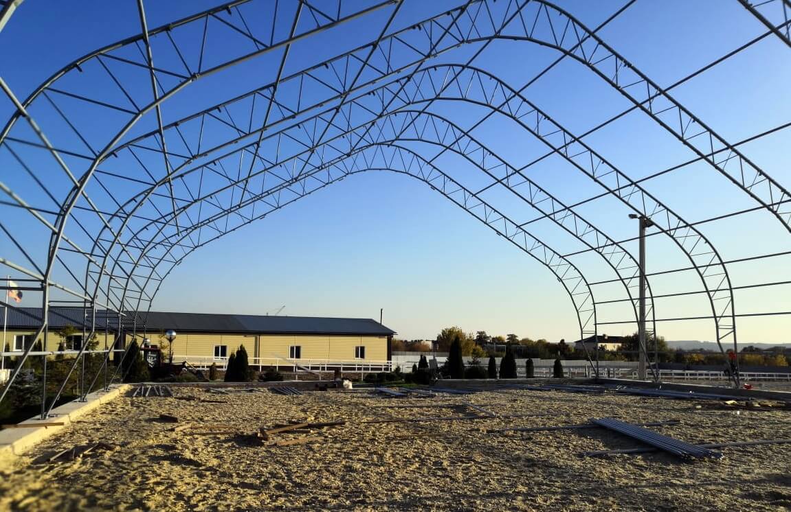 Специалисты компании ТЕНТПРО завершили монтаж каркасно-тентового конного манежа в Ленинградской области. Манеж серии «Динамика» с размерами...
