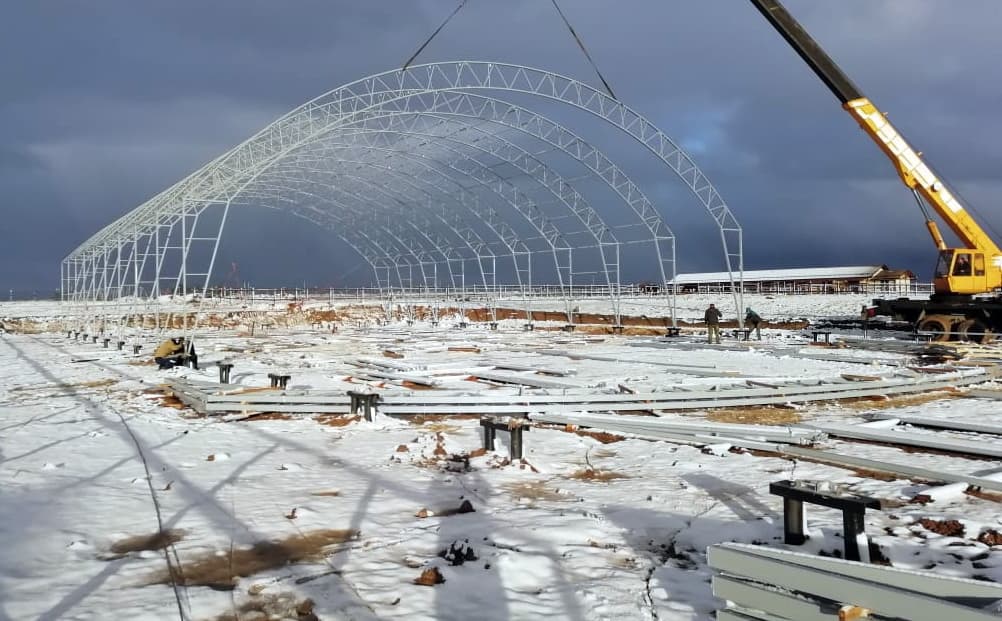 Специалисты компании ТЕНТПРО ведут монтаж каркасно-тентового конного манежа в Челябинской области. Ангар серии «Динамика» с размерами 22х44м выполнен в холодном...