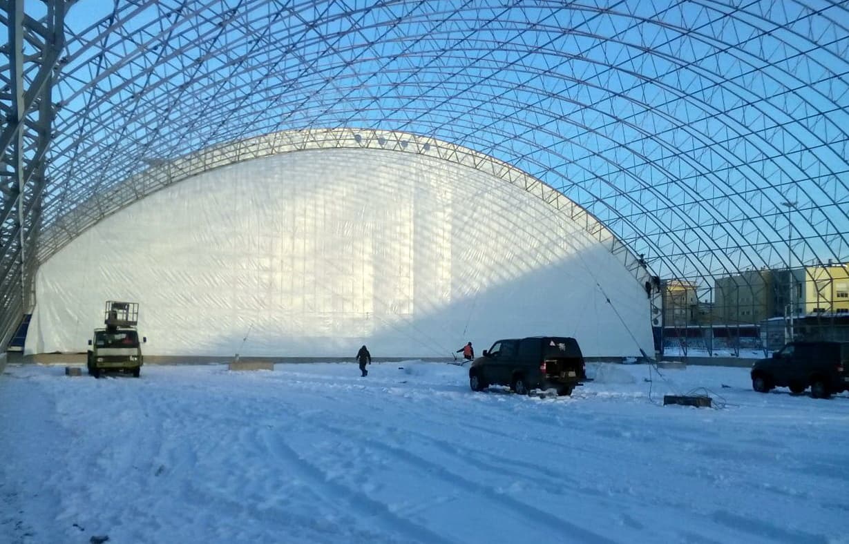 В г. Оренбурге специалисты компании ТЕНТПРО завершили монтаж каркасно-тентового спортивного комплекса серии «Динамика» размером 45х102м, в тёплом...